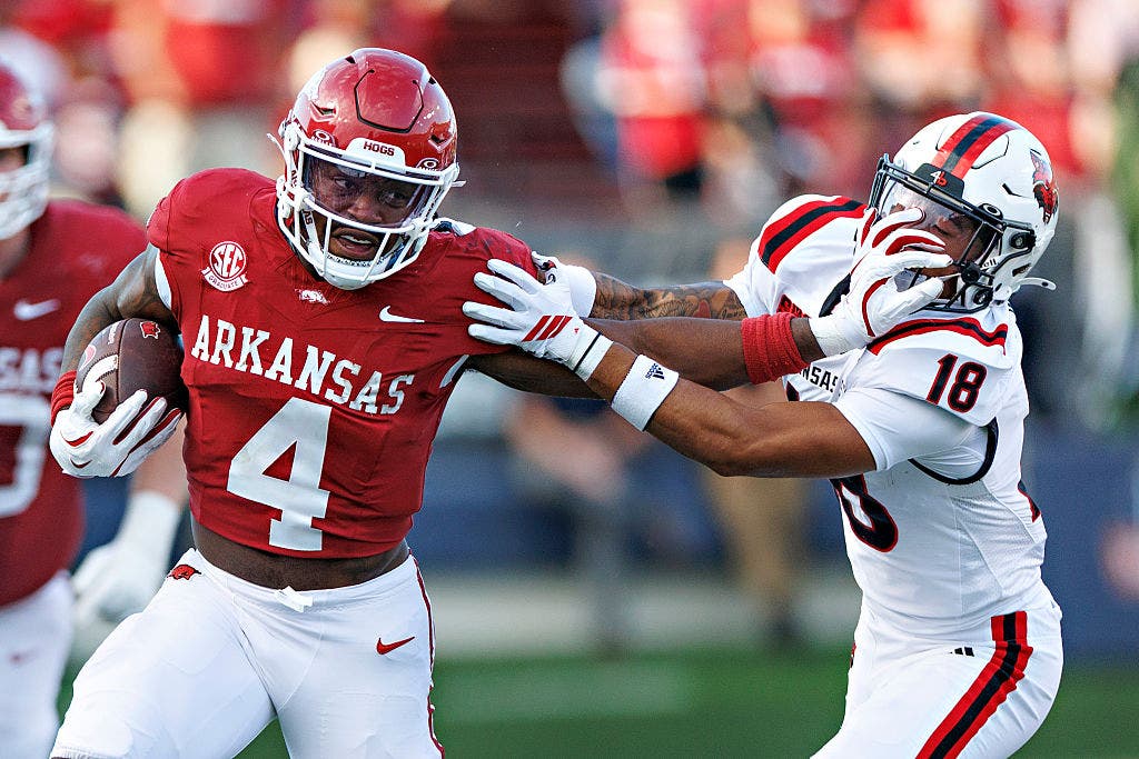 Arkansas RB Mike Washington Jr. is an appealing draft option due to his speed and physicality. (Photo by Wesley Hitt/Getty Images)