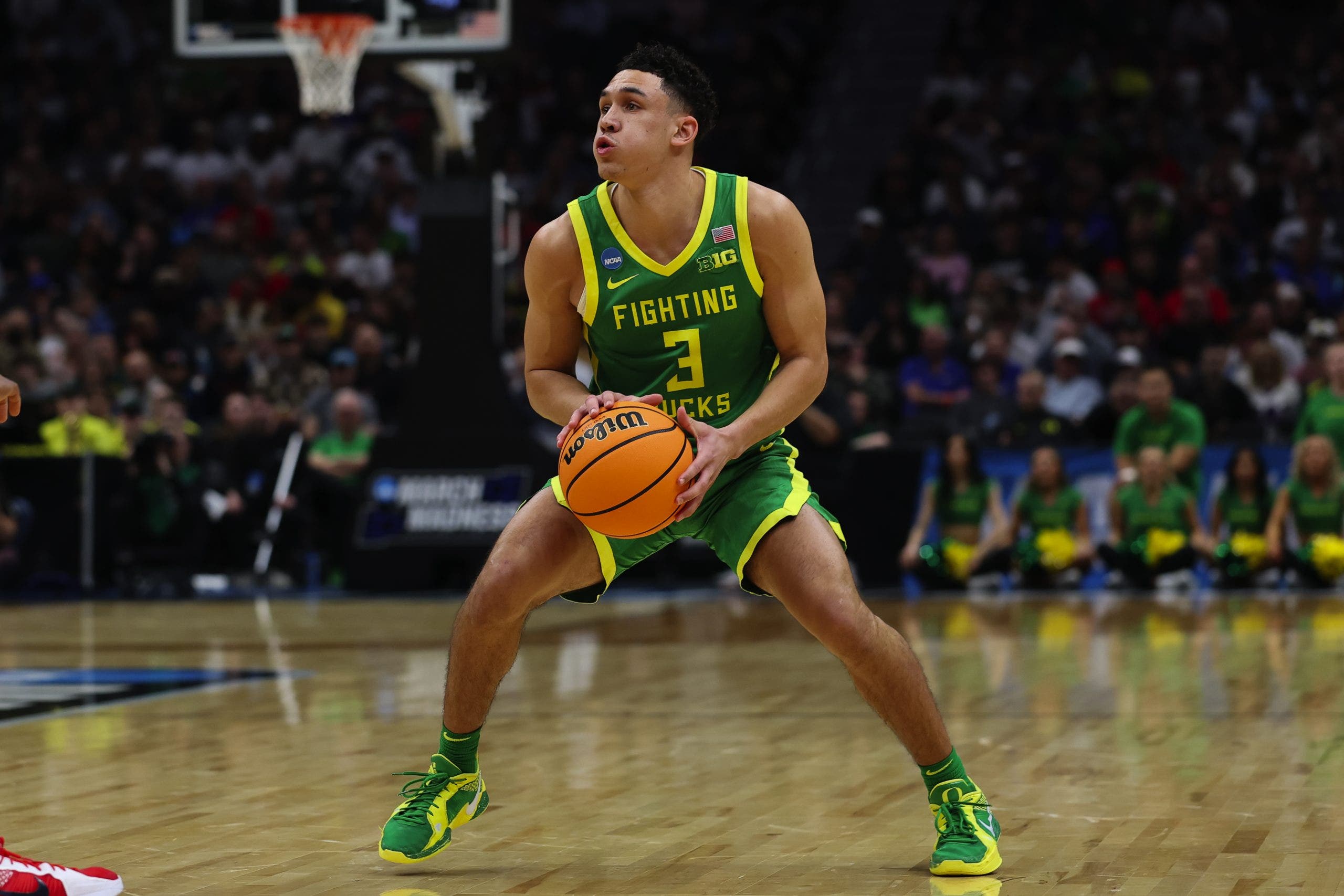 Jackson Shelstad averaged 15.6 points and 4.9 assists per game at Oregon as a junior. (Photo by Alika Jenner/Getty Images)