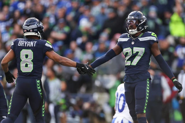 Defensive backs Coby Bryant and Riq Woolen were two of the notable players to depart the Seahawks this offseason. (Photo by Steph Chambers/Getty Images)