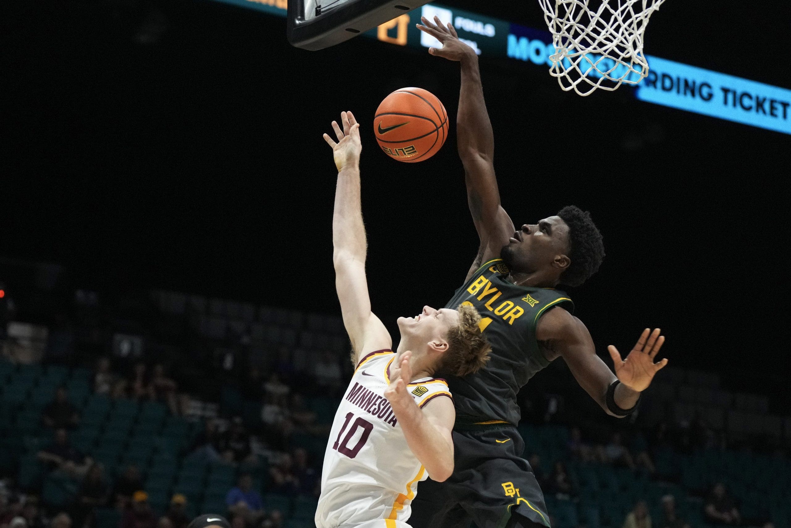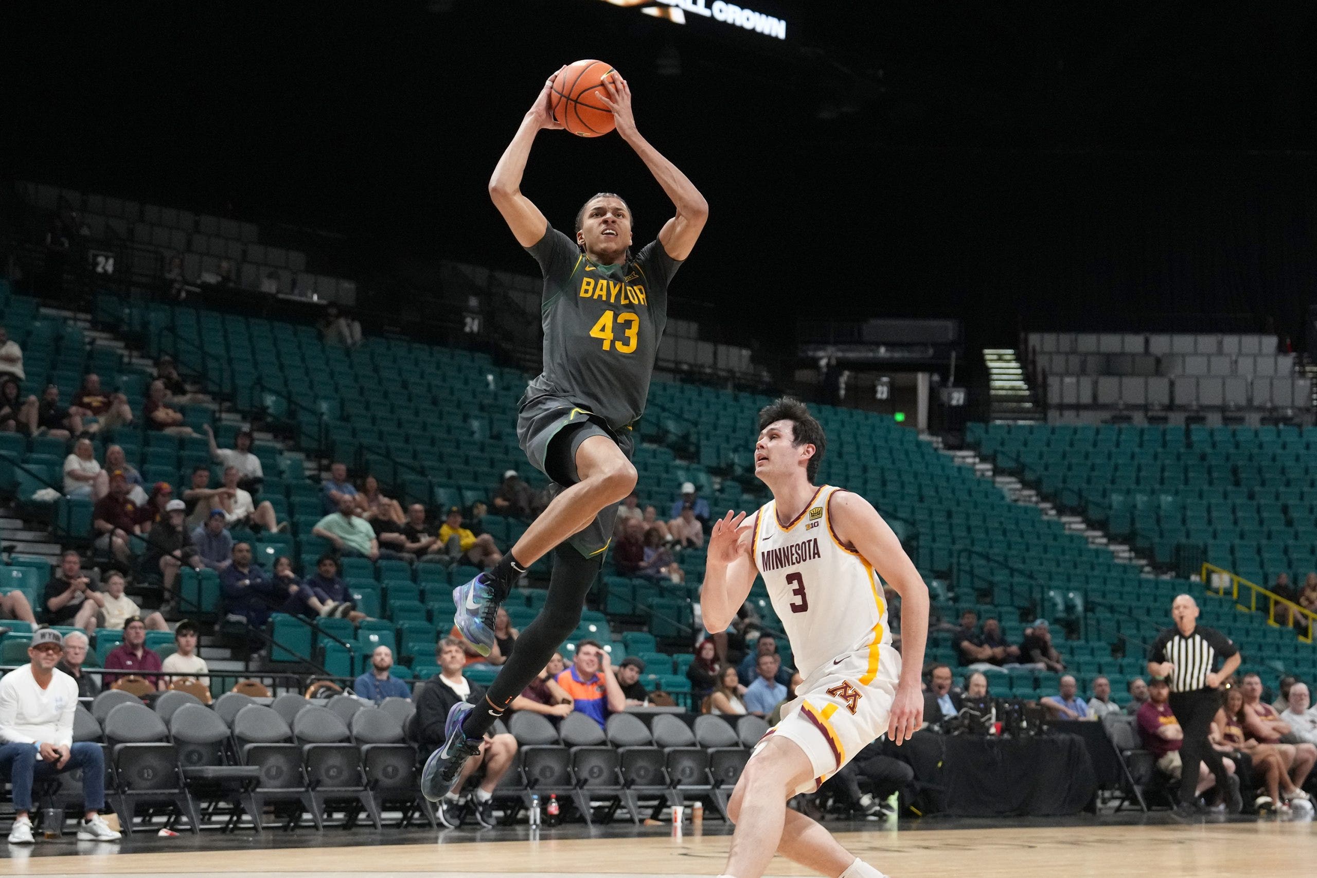LAS VEGAS — In a 35-second span midway through the first half Wednesday night, with Baylor trailing Minnesota in the opening round of the College Basketball Crown, freshman guard Tounde Yessoufou authored an exhilarating sequence that encapsulated why so many NBA scouts and executives are awaiting his decision to turn pro or remain with the Bears for another season.